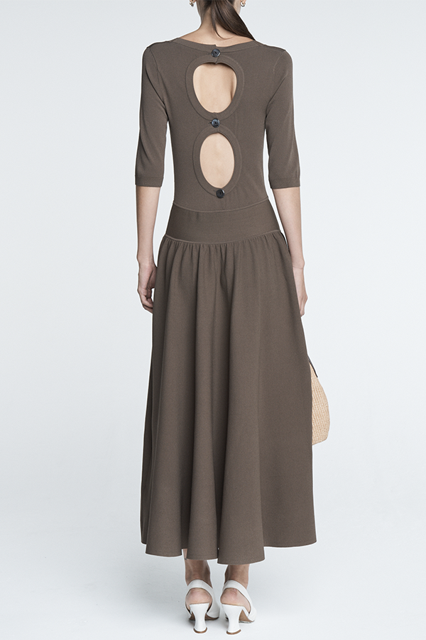 Double Keyhole Dress in Cotton Taupe