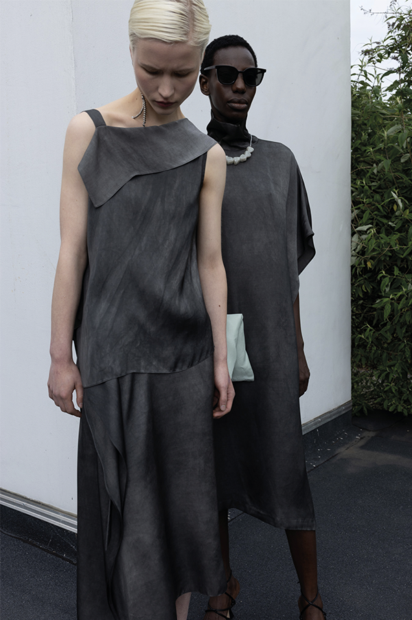 Scala Woven Skirt in chartreux viscose featuring an asymmetric cut and belt closure. The angled hem and soft fabric move with ease, adding quiet sophistication to your everyday looks. A distinctive piece that elevates simple styling with refined design.