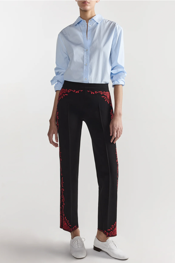 Fitted, pull-on trousers with a cropped, straight leg. Features pintuck detailing at front and back, with faux pockets at the rear. Knit in Italy from a cotton stretch blend for a structured fit with comfortable stretch.