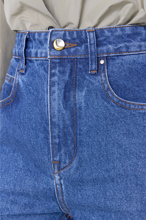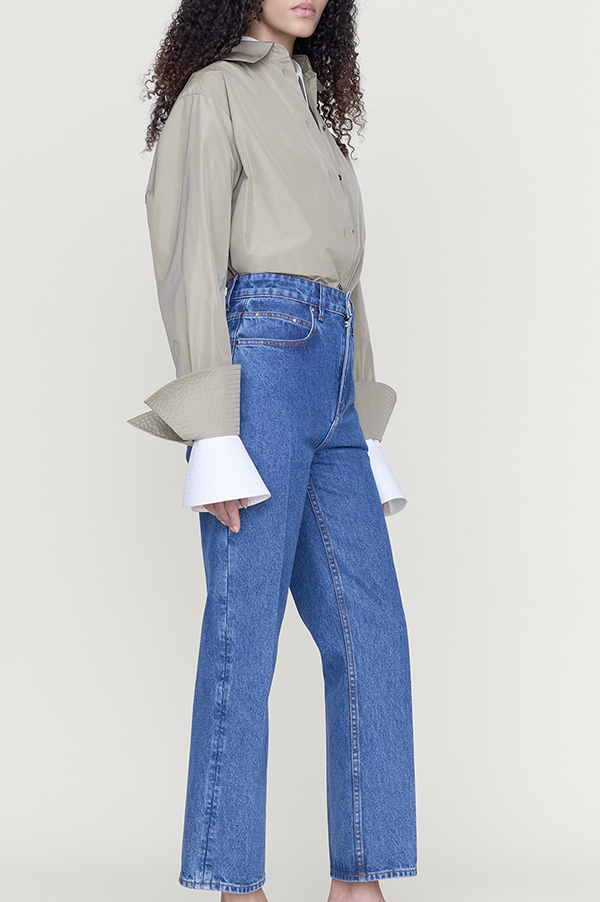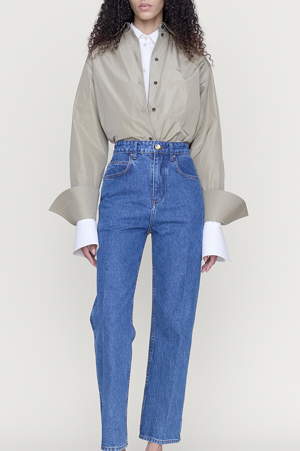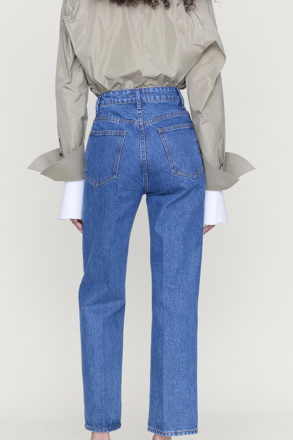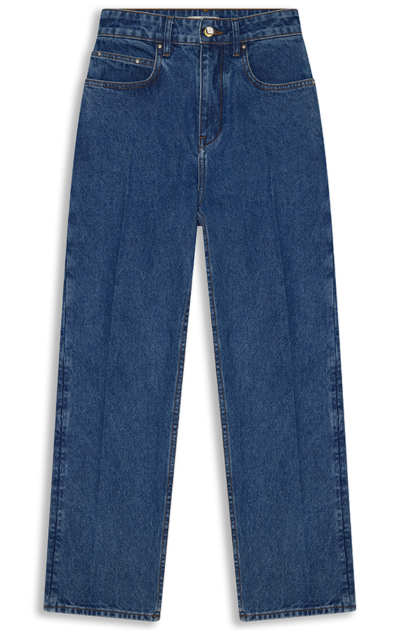A high-rise straight-leg jean with a 27" cropped inseam. Tailored to the body and designed to break in gently, softening with every wear. Made in Los Angeles.