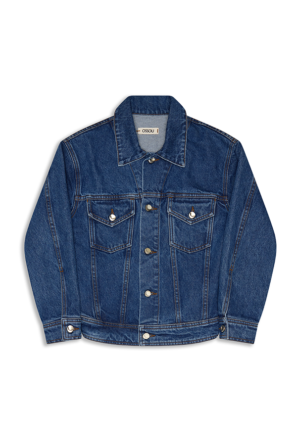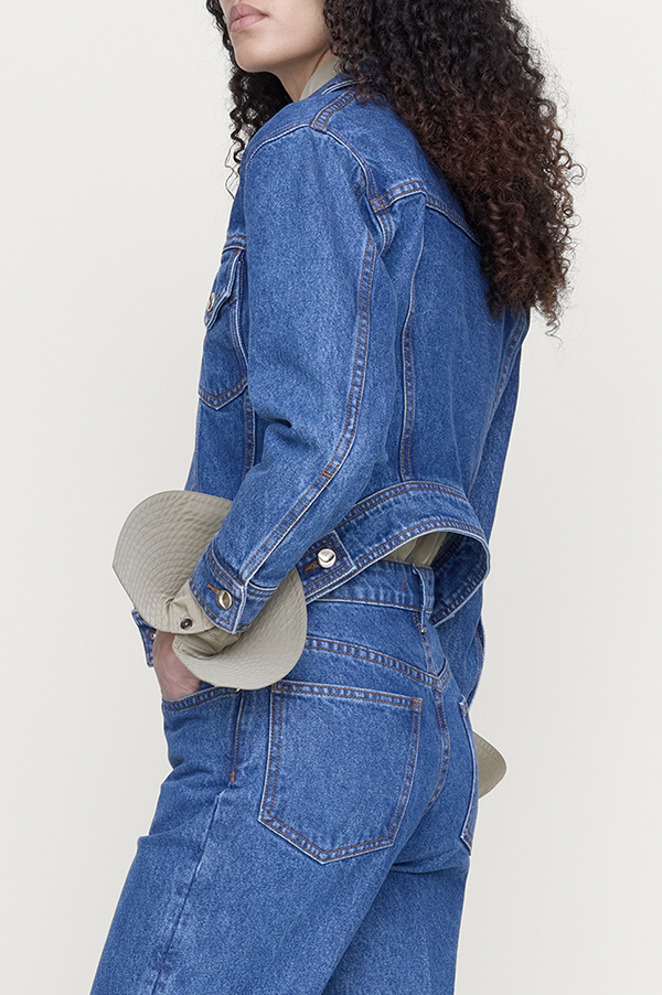A shrunken denim jacket with a sculptural kick-back hem that warps the classic silhouette - sharp, compact, and unexpected. Designed to break in gently, softening with every wear. Made in Los Angeles.