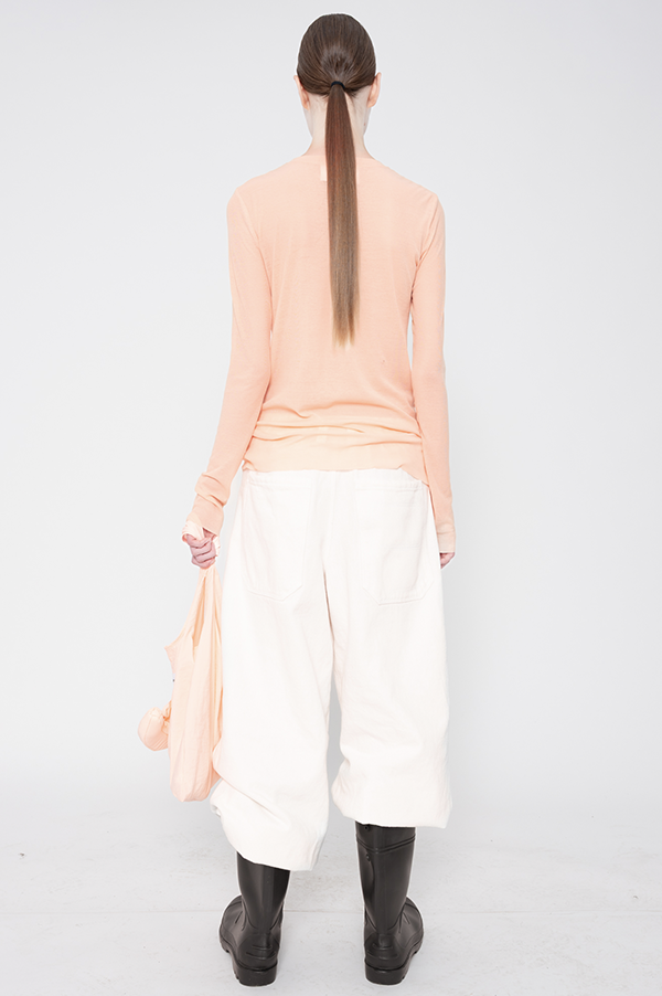 Thin ribbed long sleeve double layer top with crew neckline and raw hem.