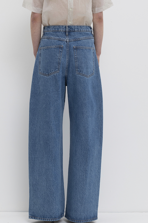 The Pullos Jeans are made from luxurious deep petrol denim for a chic and modern aesthetic. These wide-leg trousers feature a flattering high-rise waist and a contemporary bow leg design, ensuring a stylish silhou-ette that complements any figure. With practical front and back patch pockets, these jeans seamlessly blend functionality with fashion, making them a must-have addition to your collection.