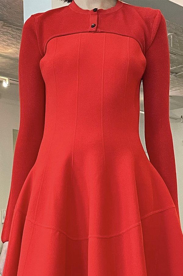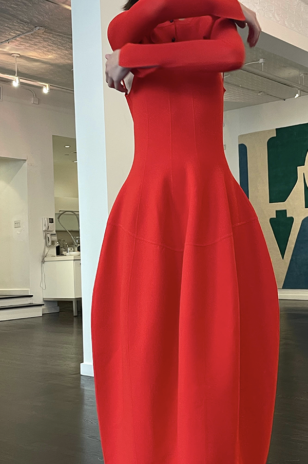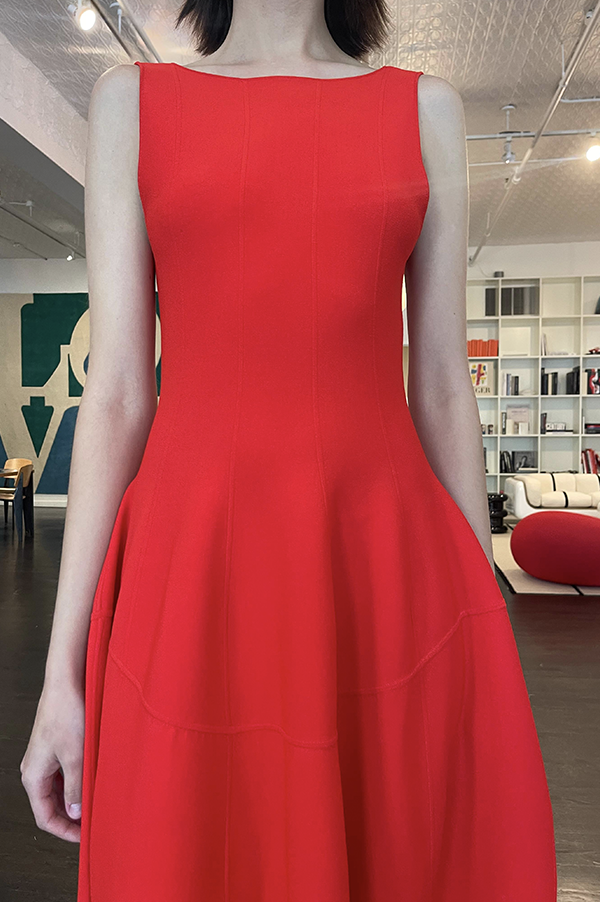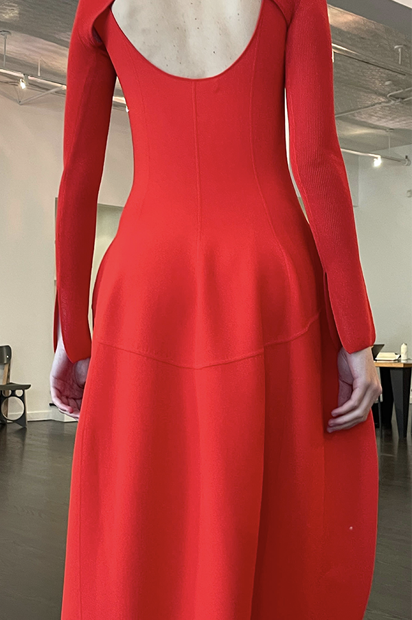 The Tama Long Knit Dress is a fitted midi dress with a softly curved waist seam that enhances the natural shape. Crafted from a dense, smooth fabric that holds structure while remaining fluid. Features a classic round neckline and a streamlined silhouette that falls just below the knee.